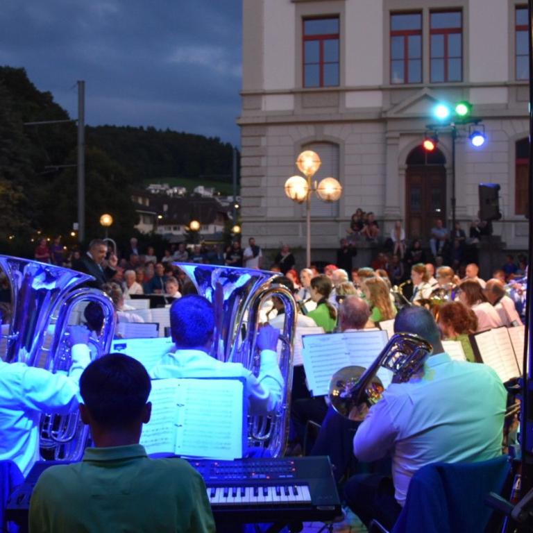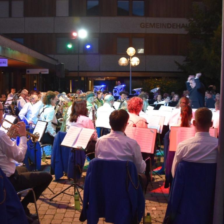 Am 22. August 2025 fand das Laternenkonzert wieder traditionell auf dem Dorfplatz in Muhen statt. Das Wetter meinte es gut – war zu Beginn der Woche noch mit Regen zu rechnen, war der Freitagabend ein angenehmer Sommerabend.